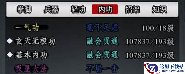 放置江湖吸星大法的技能看起来很李丹,但是作为内功一项的它,并没有什么用。主要的原因是不能升级。而且没有说明,所以并不是很清楚吸星大法是不是根据对手的内功来套用为你自己的内功的。