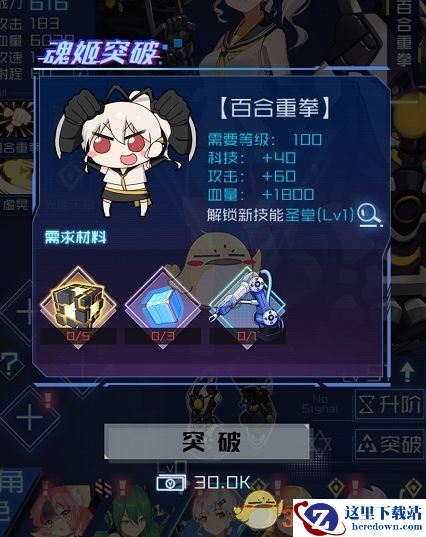 建议游戏前期不要想着突破了!吃资源还耗时间,萌新阶段是无法承受的,建议100级再去了解突破。