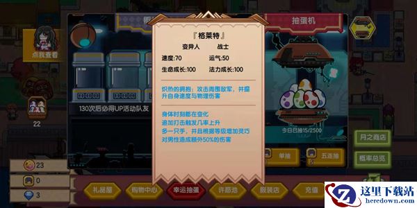 这个角色是一个变异人战士,基础速度为70点、运气50、生命成长100、发力成长100.