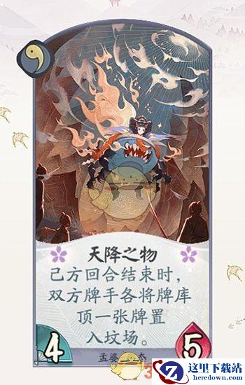 效果:己方回合结束时,双方牌手各将牌库顶一张牌置入坟场。