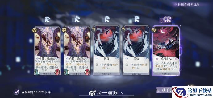 我先分解掉一张,然后去百闻馆用更新送的卡包抽到的,SR的概率还是蛮高的,这样我们可以多得一些御札