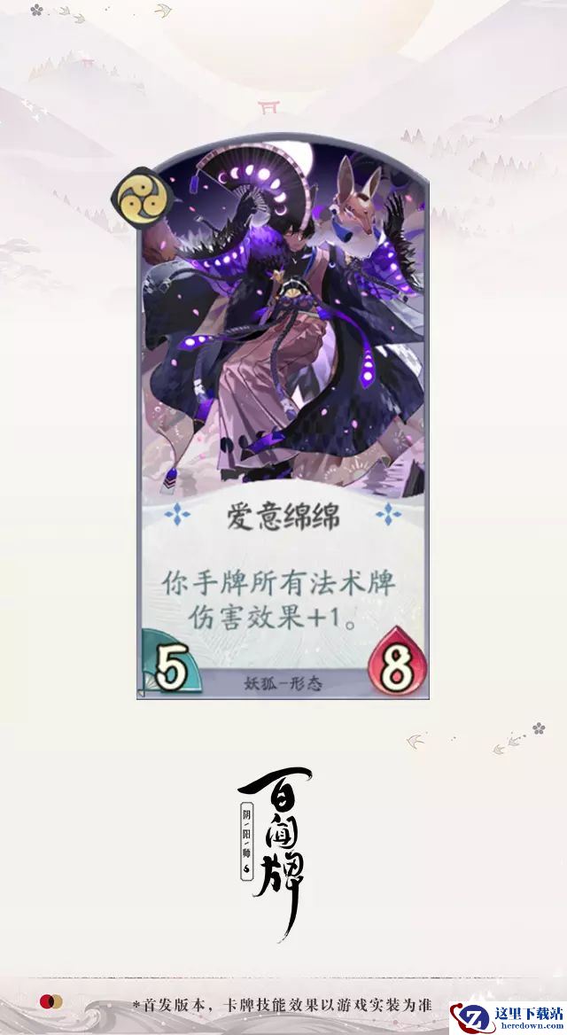 以上就是手游网小编整理的《阴阳师:百闻牌》狐妖【爱意绵绵】介绍,想知道更多相关资讯攻略的请关注手游网。
