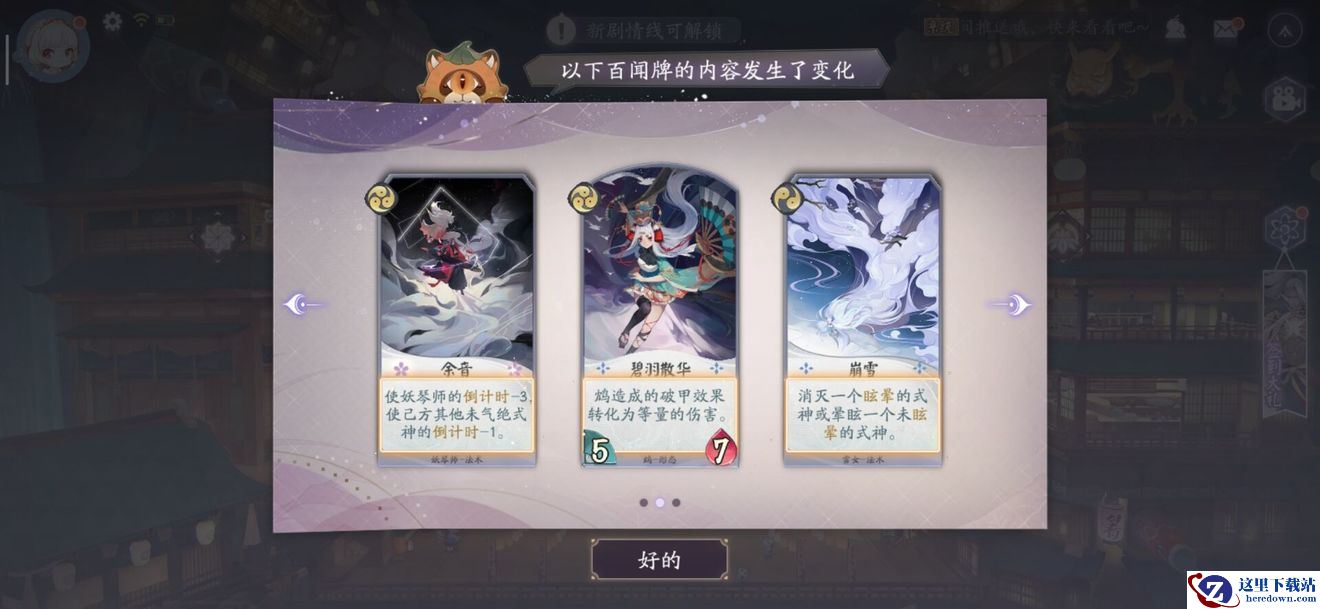 妖琴师的【余音】增加了一个效果:让己方未绝气的式神倒计时-1