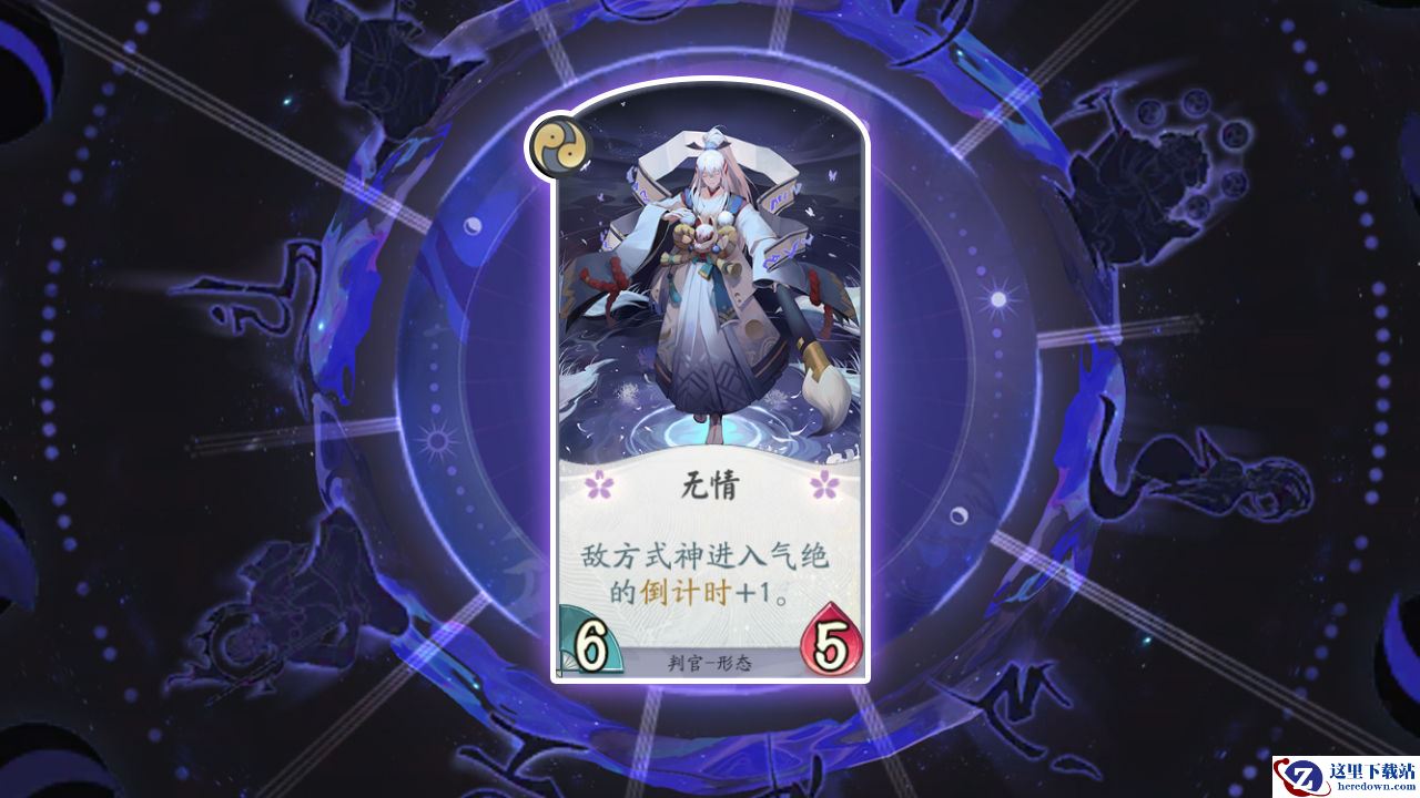 卡牌作用:此形态攻击力很高,且只要此形态存在于场上,敌方式神气绝后就需要四个回合才能够返回战场,十分拖慢节奏。搭配判官自带的消灭式神卡牌,如同名称一样,是无情死神。