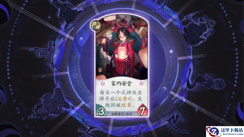 卡牌效果:每当一个式神攻击牌手后“运势4”:失败则被眩晕。