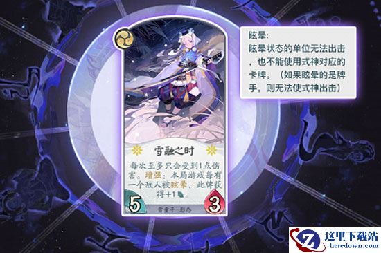 雪童子:是一名控制与输出兼备的式神,相互配合雪女可以施展出强大的压制力,此外特别注意的是雪童子在三级“雪融之时”形态下每次至多只会受一点伤害,将是1个非常难缠的敌人。