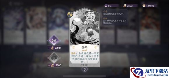 这张牌是判官的强解场牌和斩杀牌,利用夺命可以强行解掉对面的大哥,另外作为战斗牌,这张牌打出你甚至还能战场,非常赖皮(打到盾上无法触发效果),不过杀死13个式神这个较难触发。