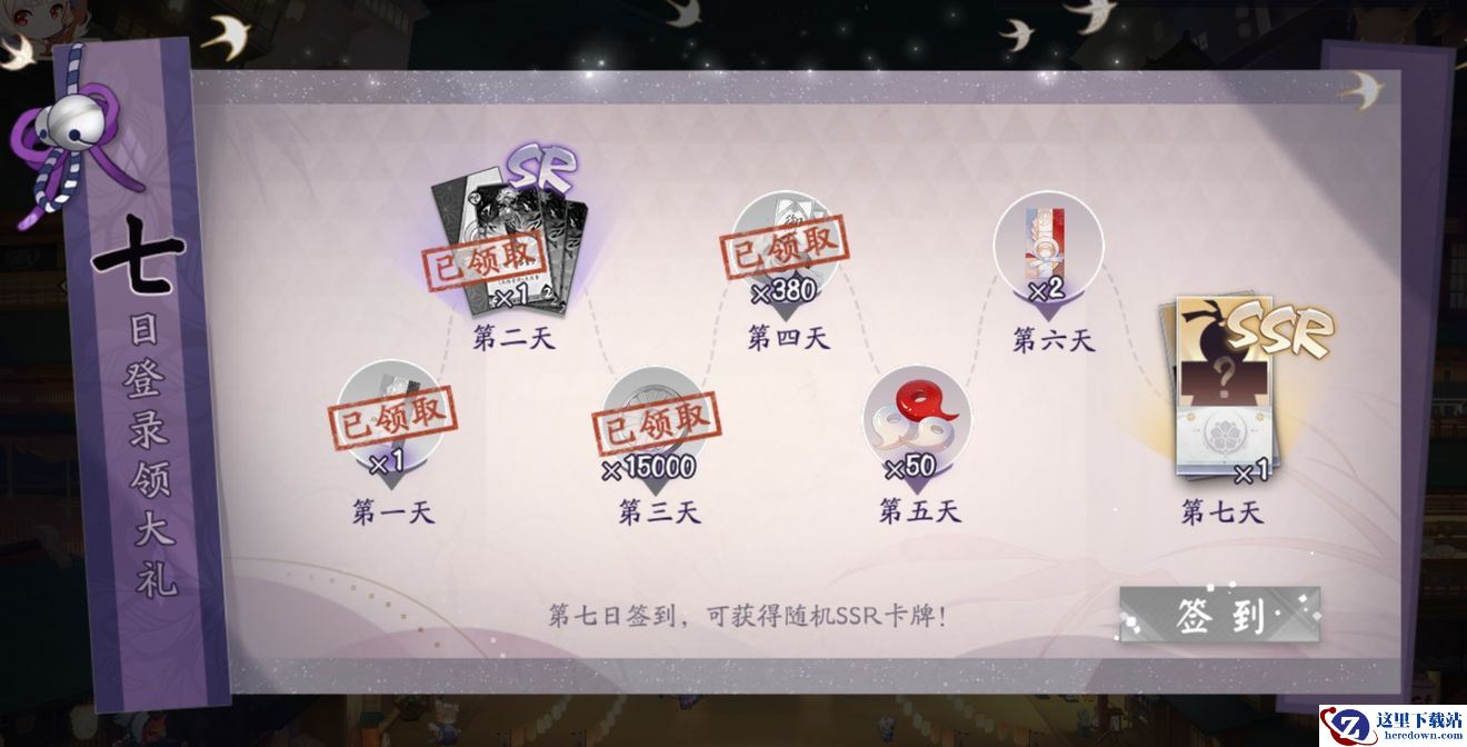 2、在“新手试炼”中可以获得“海坊主、山童、白狼和山兔”四个式神的七张基础卡以及这四个式神的各一张SR卡。