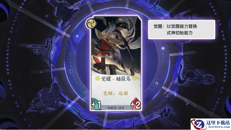 卡牌效果:法术牌,使妖刀姬获永久获得+1力量+2生命,让姑获鸟获得觉醒能力。