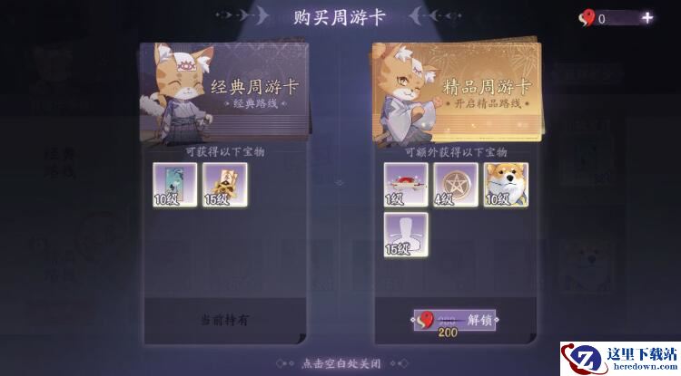 精品周游卡需要花费勾玉获得,价格:200勾玉。