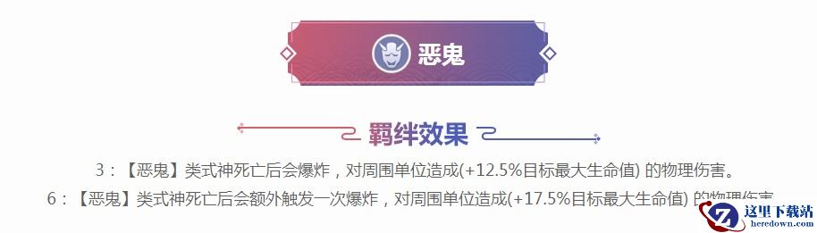 6:【恶鬼】类式神死亡后会额外触发一次爆炸,对周围单位造成(+17.5%目标最大生命值) 的物理伤害。