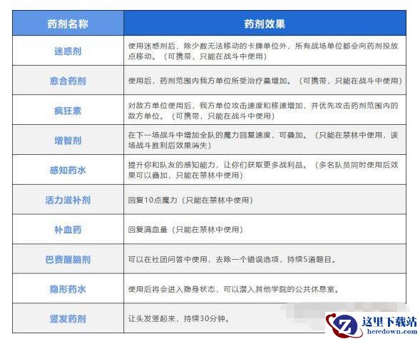 愈合药剂:使用后,药剂范围内我方单位所受治疗量增加。(可携带,只能在战斗中使用)