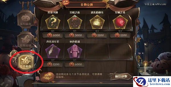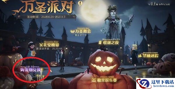 3、返回万圣派对的界面,可以点击左下角的礼物兑换。
