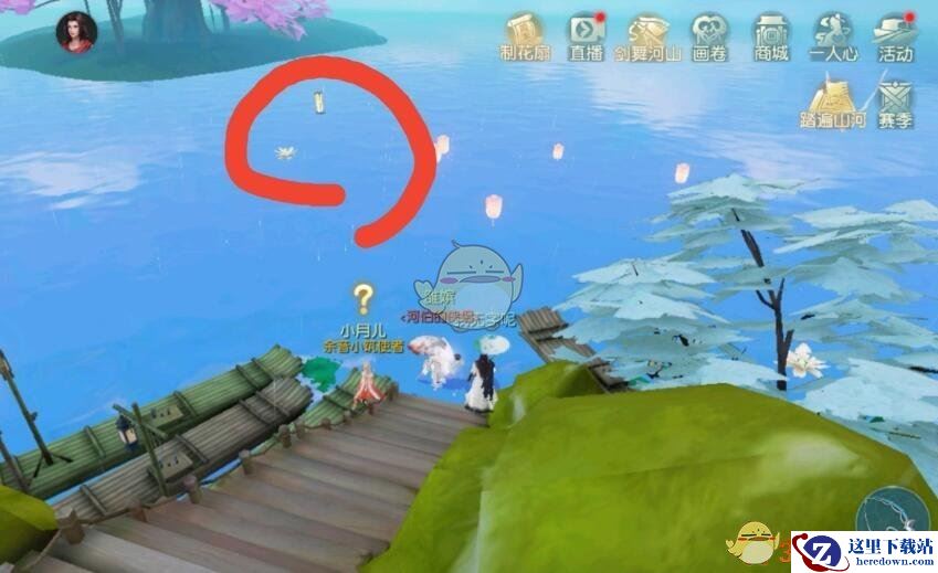 去长安“渭河渡口”触发传闻, 上船朝着情缘岛的地方划一段距离, 那个可以演奏的地方附近有一个荷花,靠近图中所圈位置的荷花处,自动触发剧情,就可以开始对话