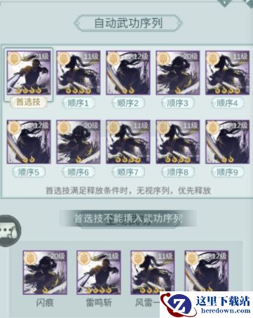 首选技无视自动武功序列,只要满足条件,就一定会释放。将某个武学设置为“首选技”后,不可添加到序列中10)想要测试自动的强度,可以去打心魔,您的自动方案如何设置,心魔就如何行动。