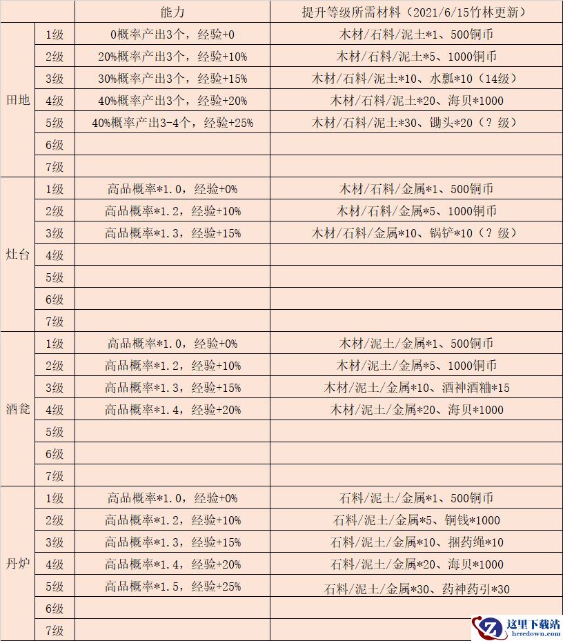 酒瓮和灶台,如果平常都注意的话,一般经验是溢出的,可以缓缓。但是升级会加出神品的概率,自行选择把。