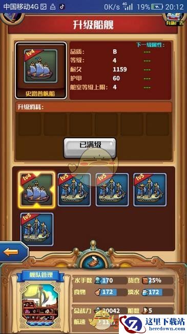 然后呢辛辛苦苦弄到下面这个配置。(一艘进游戏就给的船,四艘货船没错就是300木的那个船)