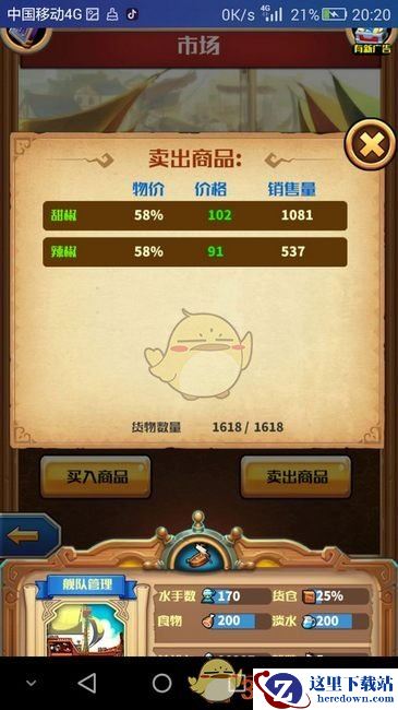 大概是一千左右的甜椒,可以看到我的货船空间还有几百,然后我们出一趟海,去到绯红之海的比科拉达。(不然就要亏本了好吧)