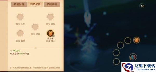 目前特技特效产出概率并不高,大家前期要谨慎打造,50级后系统会赠送一个非常实用的加血特技鞋子,装备带特技装备后在特技配置页可以查看到相关的信息,如下图。