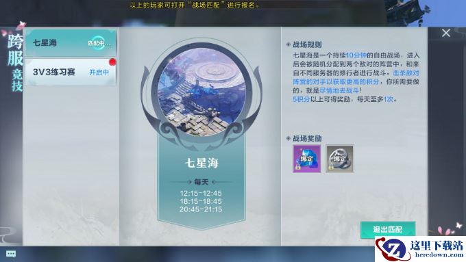 七星海每天有三个固定时段可以进行,分别是12点15分至12点45分,18点15分至18点45分和20点45分至21点15分三个时段。在这期间可以进行七星海匹配。