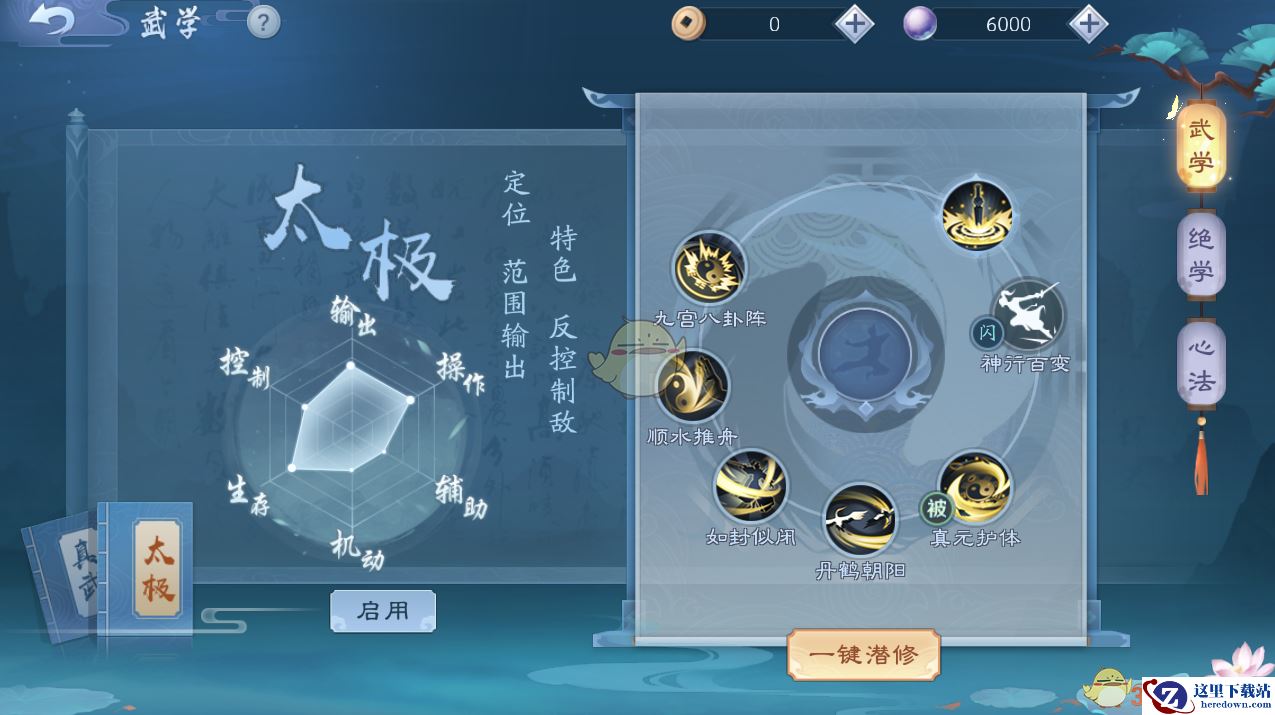 特色技能:九宫八卦阵(核心buff,持续增伤)、纯阳无极功(消耗剑气技能,瞬间释放伤害)。