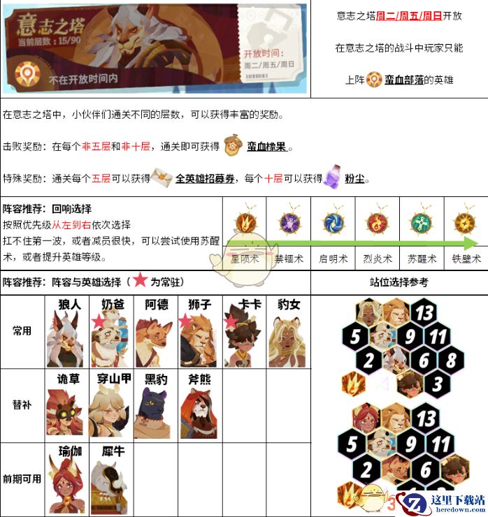剑与远征天穹试炼怎么过,每层通关后玩家都可以获得粉尘、橡果以及英雄招募卷,只要搭配好阵容,把这些奖励都拿下来也没问题,小编整理了以下的阵容与英雄的搭配,希望可以帮助玩家们在试炼塔中走得更快更高哦。