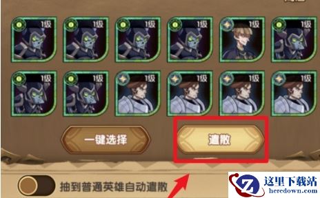 4、勾选普通英雄后,选择上方的“遣散”图标,即可将普通英雄进行分解,同时会获得相关奖励。