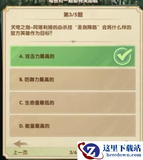3、天号之例-网塔利短的心杀技圣剑降临”会将什么样的敌方英雄作为目标?
