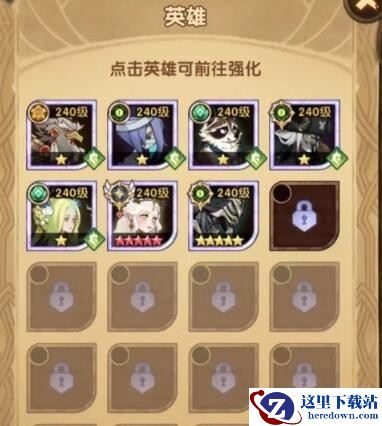 4、可能有些铁汁不知道哪里加自己的英雄,点击右上角“英雄”,对空格子进行点击 消耗迷城币即可