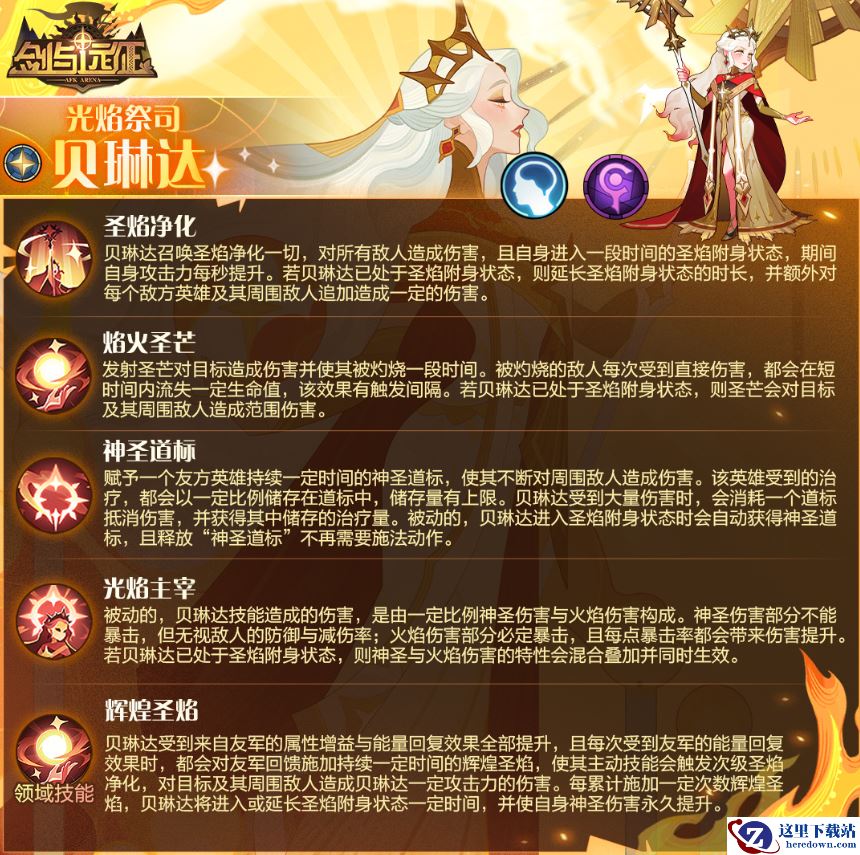 剑与远征光焰祭司贝琳达怎么样?剑与远征全新英雄光焰祭司-贝琳达现已上线,那么剑与远征光焰祭司贝琳达怎么样呢?相信许多小伙伴们还不知道光焰祭司贝琳达这个角色怎么样,那么下面小编就给大家带来了剑与远征光焰祭司贝琳达技能介绍,希望能够帮助到大家。对剑与远征感兴趣的小伙伴们快来看看吧