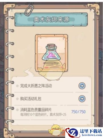 方法一、贩售机福利的白蝌蚪的礼包中可以获得100个奥术灰烬,玩家可以每天购买一次。