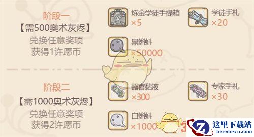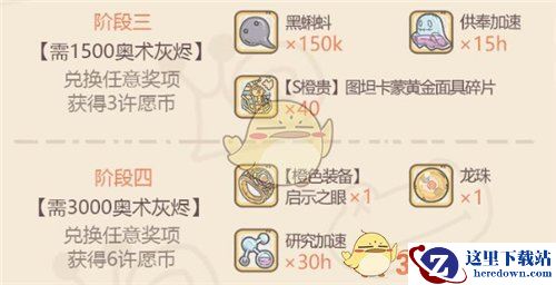 在选择五个阶段的奖励后,分别会获得1/2/3/6/10个许愿币,刚好可以用来凑许愿积分。