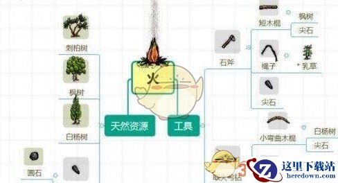 合适的环境很重要!先找到一棵“刺柏树”(得到火种)~~附近也要有枫树等等能手摘叶子的树(得到叶子)。