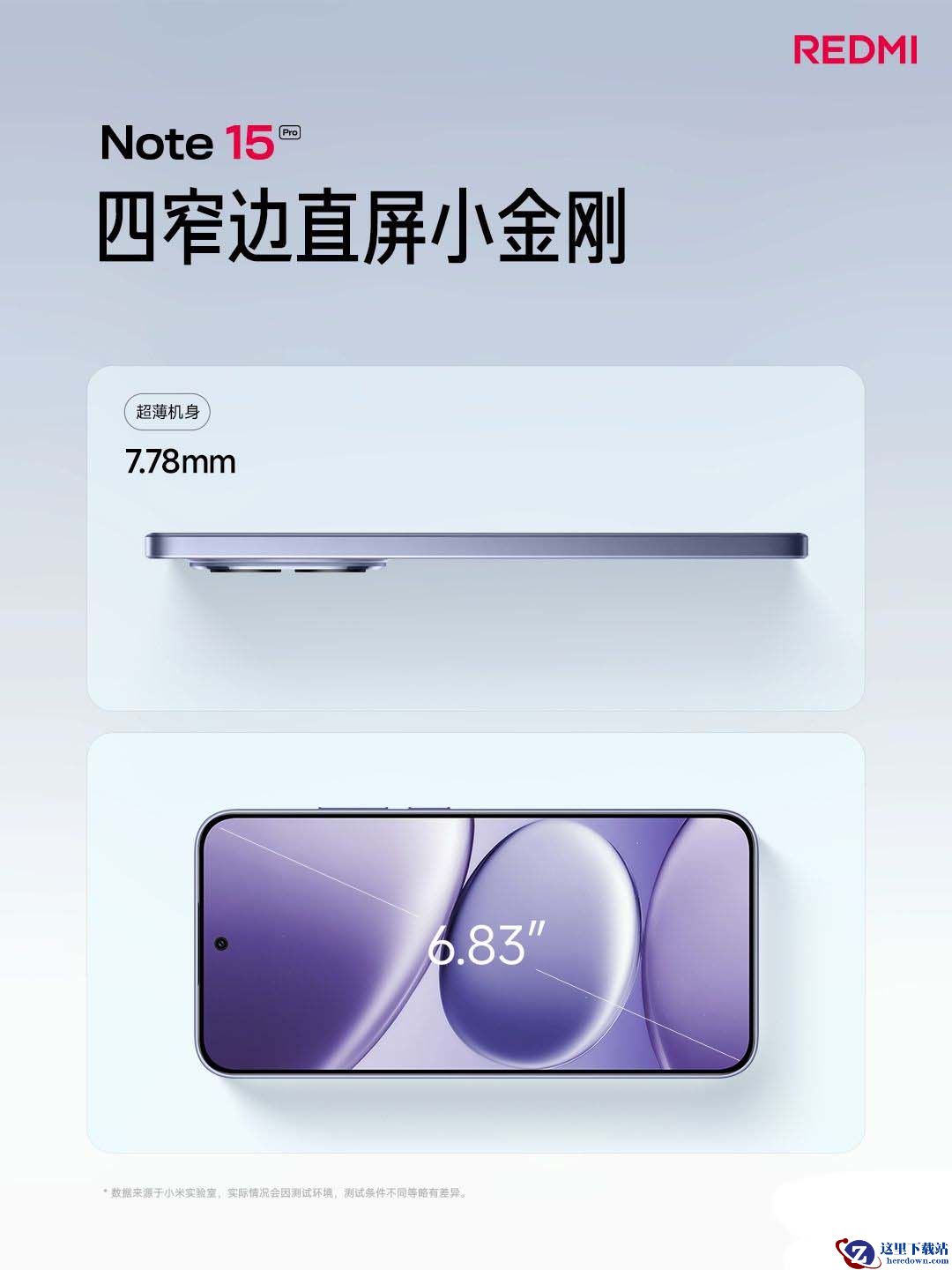 据介绍,小米 REDMI Note 15 Pro 手机拥有 Pro 形态:超窄边框,7.78mm 超薄机身,轻巧适手;配备 Pro 屏:6.83 英寸 1.5K 超级阳光屏(分辨率 2772*1280);提供 Pro 配色:四色可选,官方特别推荐「云霞紫」。