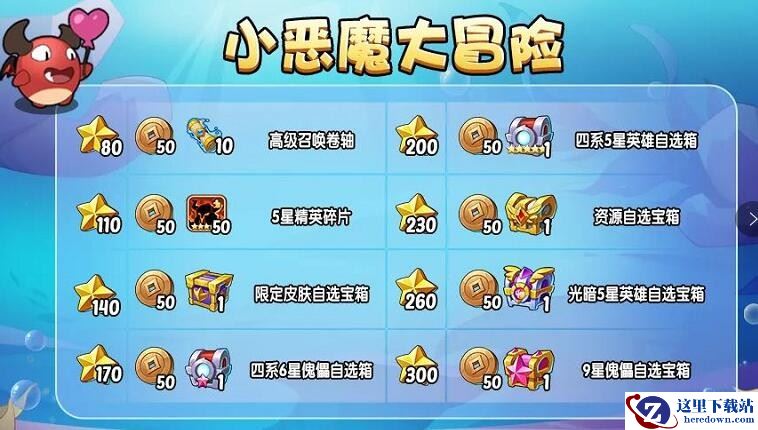 在小恶魔大冒险过程中,还会收获星星。当星星达到一定数量时还可获得达标奖励,其中包含可用于【招财进宝】的活动道具<招财铜钱>。