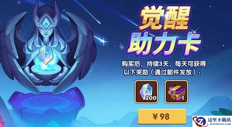 活动期间购买觉醒助力卡,持续3天每天获得的奖励如图所示。