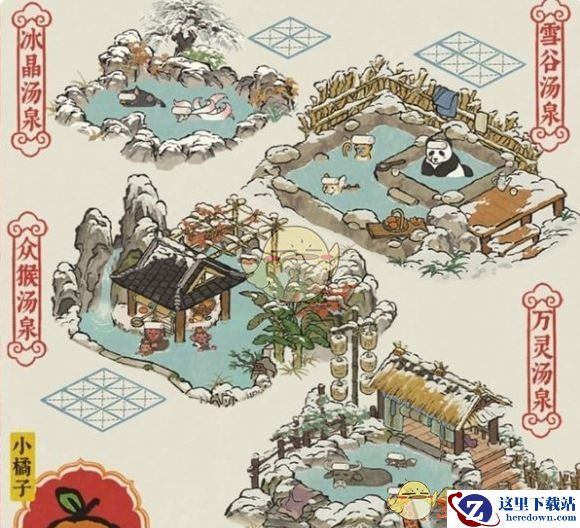 5、新增白雪镇4种限定小动物汤泉「冰晶汤泉」、「众猴汤泉」及「万灵汤泉」。
