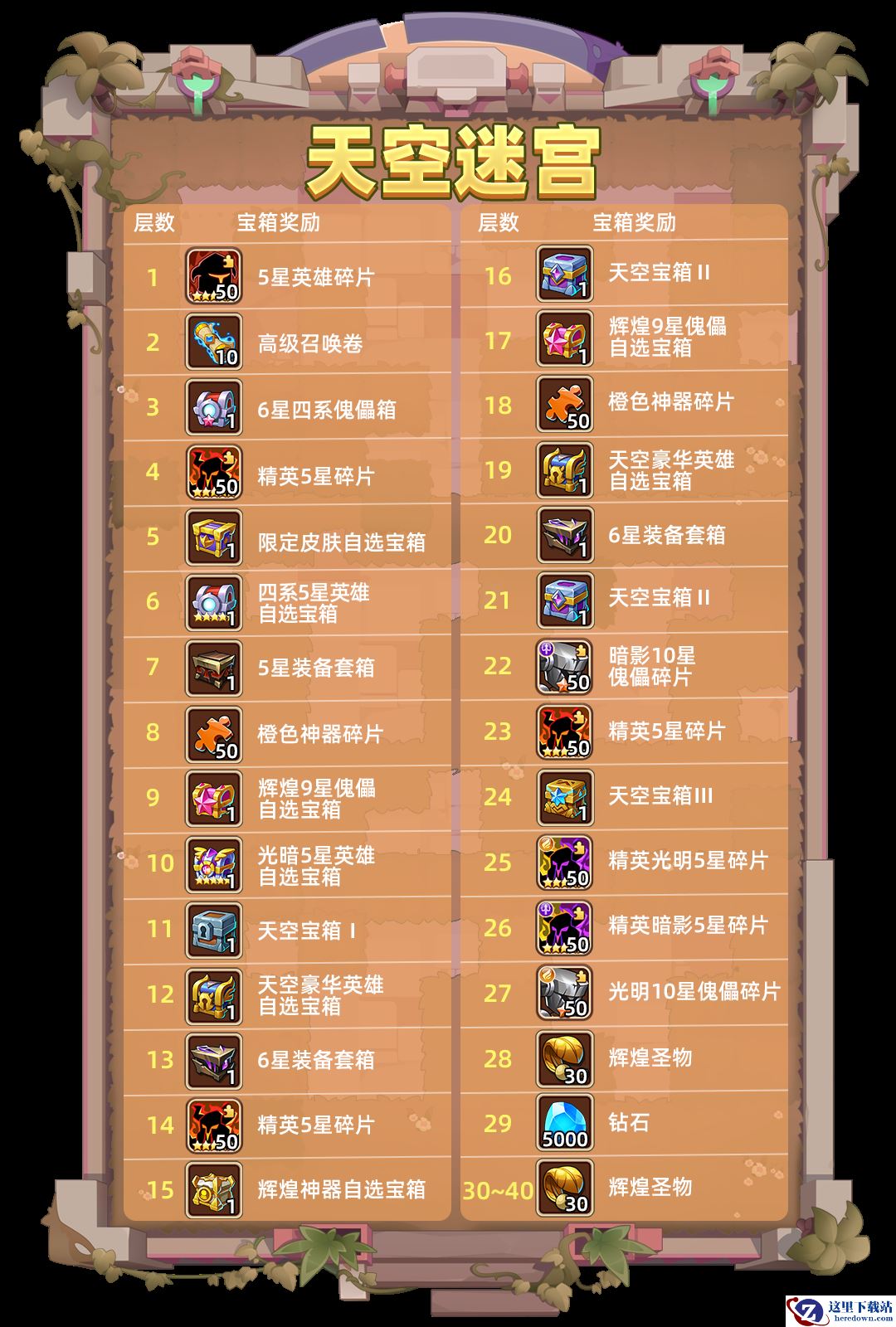 1.活动期间,通过使用秘银镐击碎石板来探索迷宫,可获得隐藏在石板下的奖励!每通过一层迷宫,即可获得对应奖励宝箱,通过层数越多,宝箱奖励越丰富~