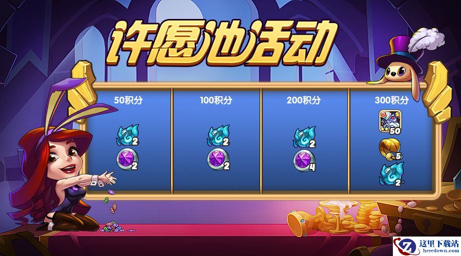 5.活动期间,在普通许愿池使用许愿币可以获得积分,当积分达到指定数额即可获得对应奖励。300积分奖励的英雄为深渊战士——巴顿国王。