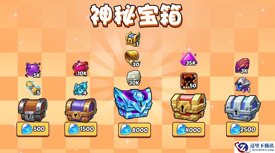 6.活动期间,使用钻石可购买宝箱。第二、三档宝箱中包含了魔兽材料,第五档宝箱中则包含公会币、辉煌圣物和英雄荣耀自选箱。