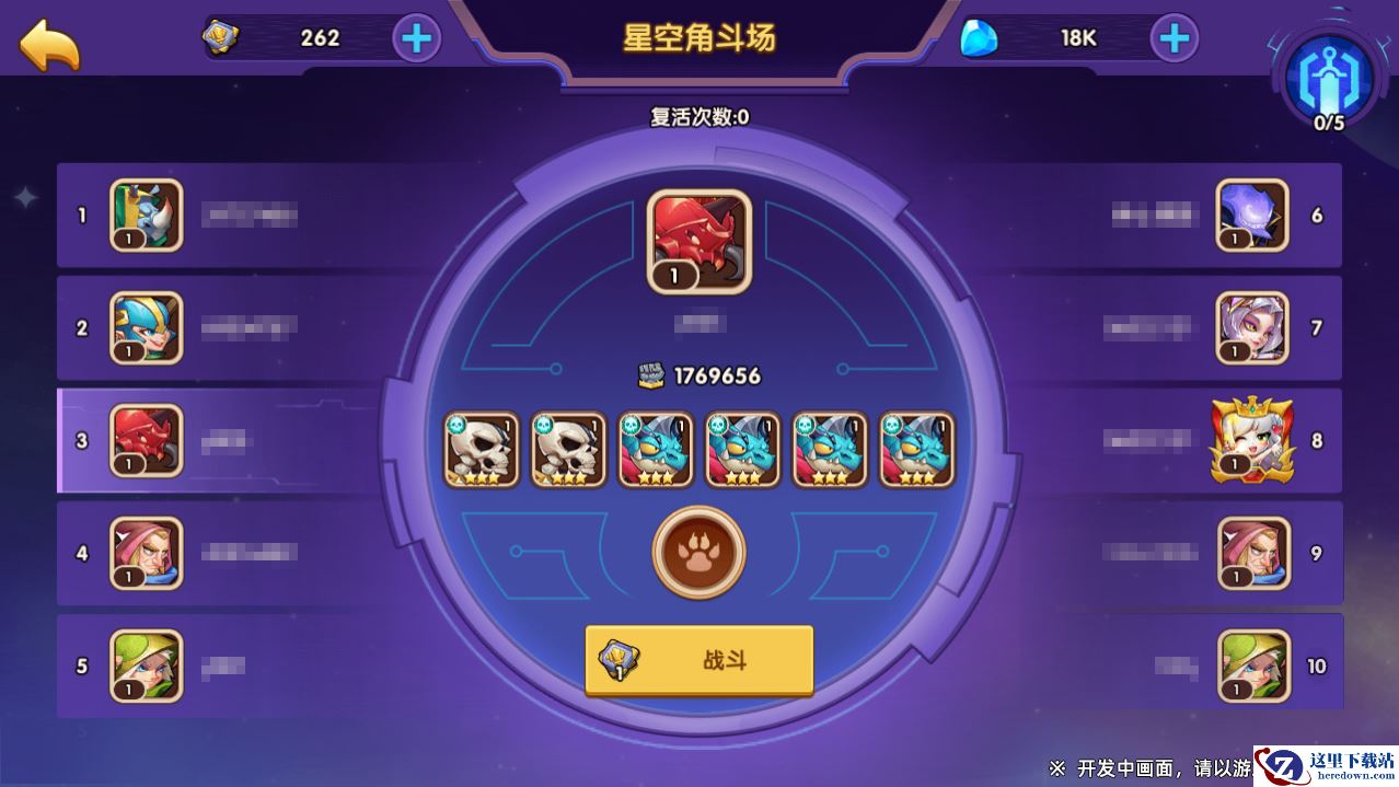 进入星空角斗场后,在初始界面正上方可以看到当前赛季以及本赛季倒计时。一个赛季持续14天,第一天为准备期,仅可设置防守阵容。