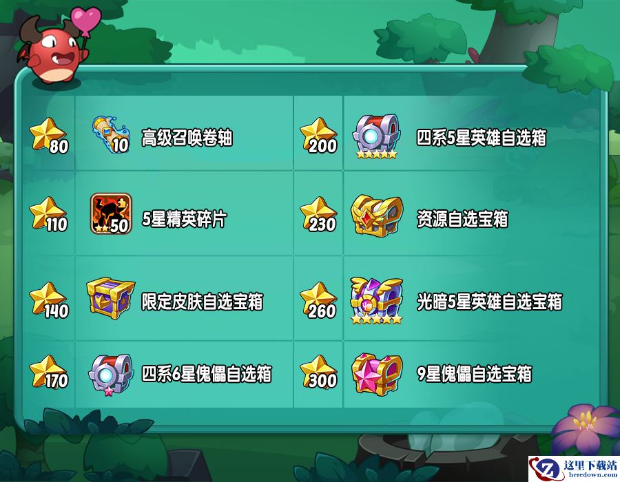 在小恶魔大冒险过程中,还会收获星星。当星星达到一定数量时还可获得图示达标奖励。