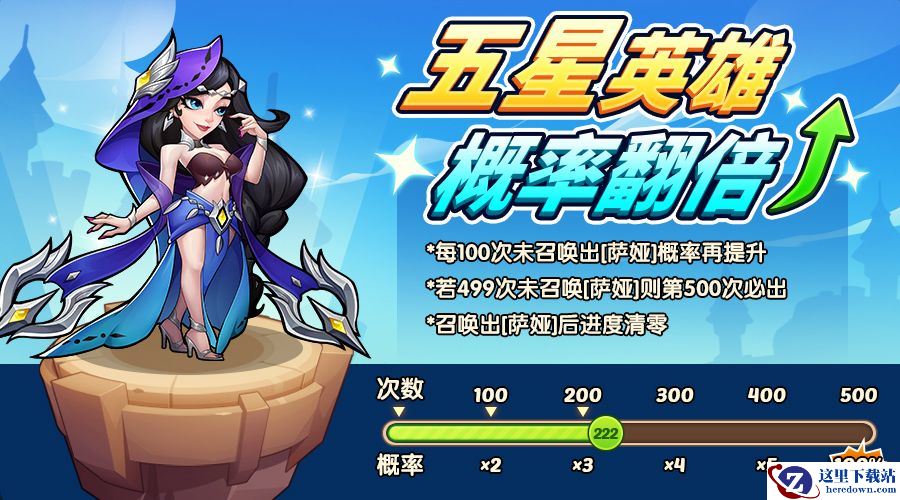 活动期间,召唤五星英雄概率翻倍,有更高的几率召唤到堡垒新英雄——萨娅。