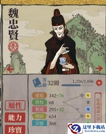 除了【理财】这一项,其他3围(建造、制造、冒险)低一点点,但偶尔需要的话还是可以派他去做。如果要盖新的房子和建筑应该要指定他去做~