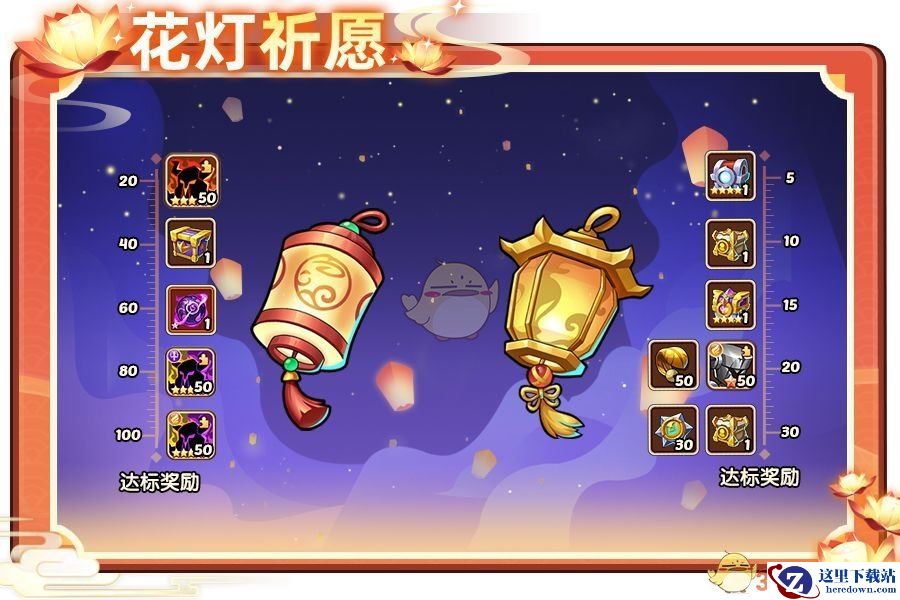 当两种花灯燃放的数量各自达到一定数额时,还将获得更丰富的奖励哦~