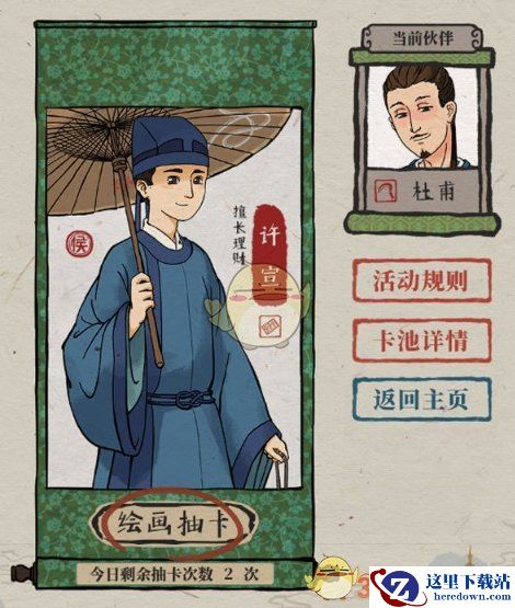 3、点击【绘画抽卡】,就能开始抽卡,每天都有3次的抽卡机会,抽卡次数与每天的0点重置。