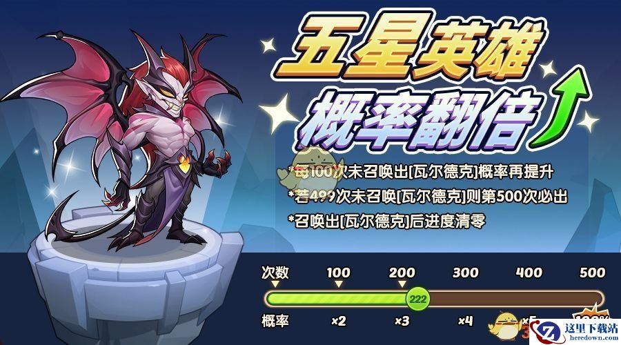 2021.07.09 00:00 - 2021.07.15 23:59活动期间,召唤五星英雄概率翻倍,有更高的几率召唤到深渊新英雄——瓦尔德克。