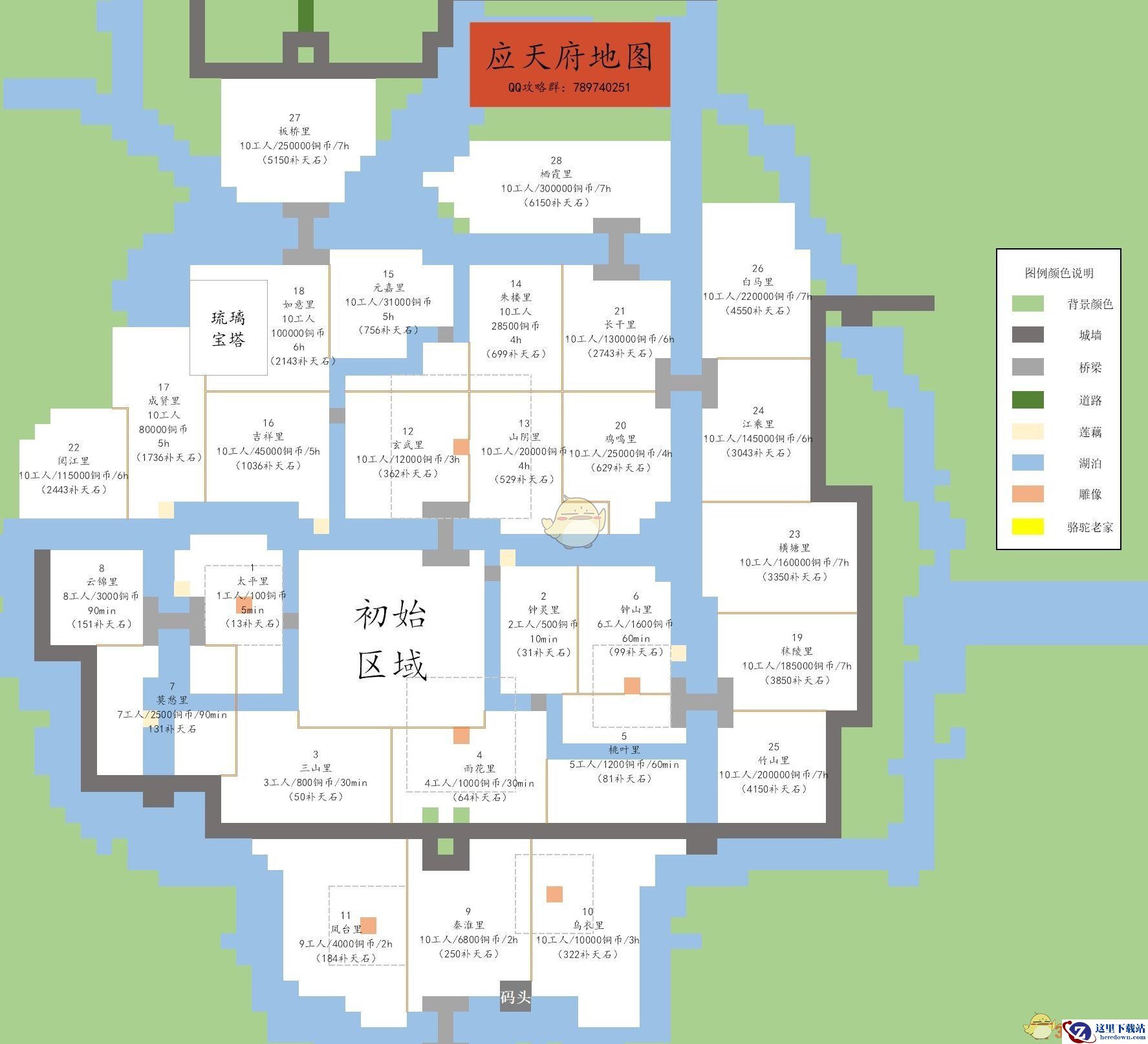 应天府的很多设施都在图上著名了,想找各个区域的朋友可以参考。