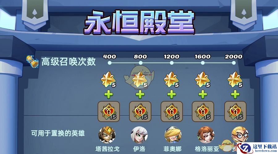 2500VIP积分:豪华四系5星英雄自选箱,包含所有四系初始5星英雄;