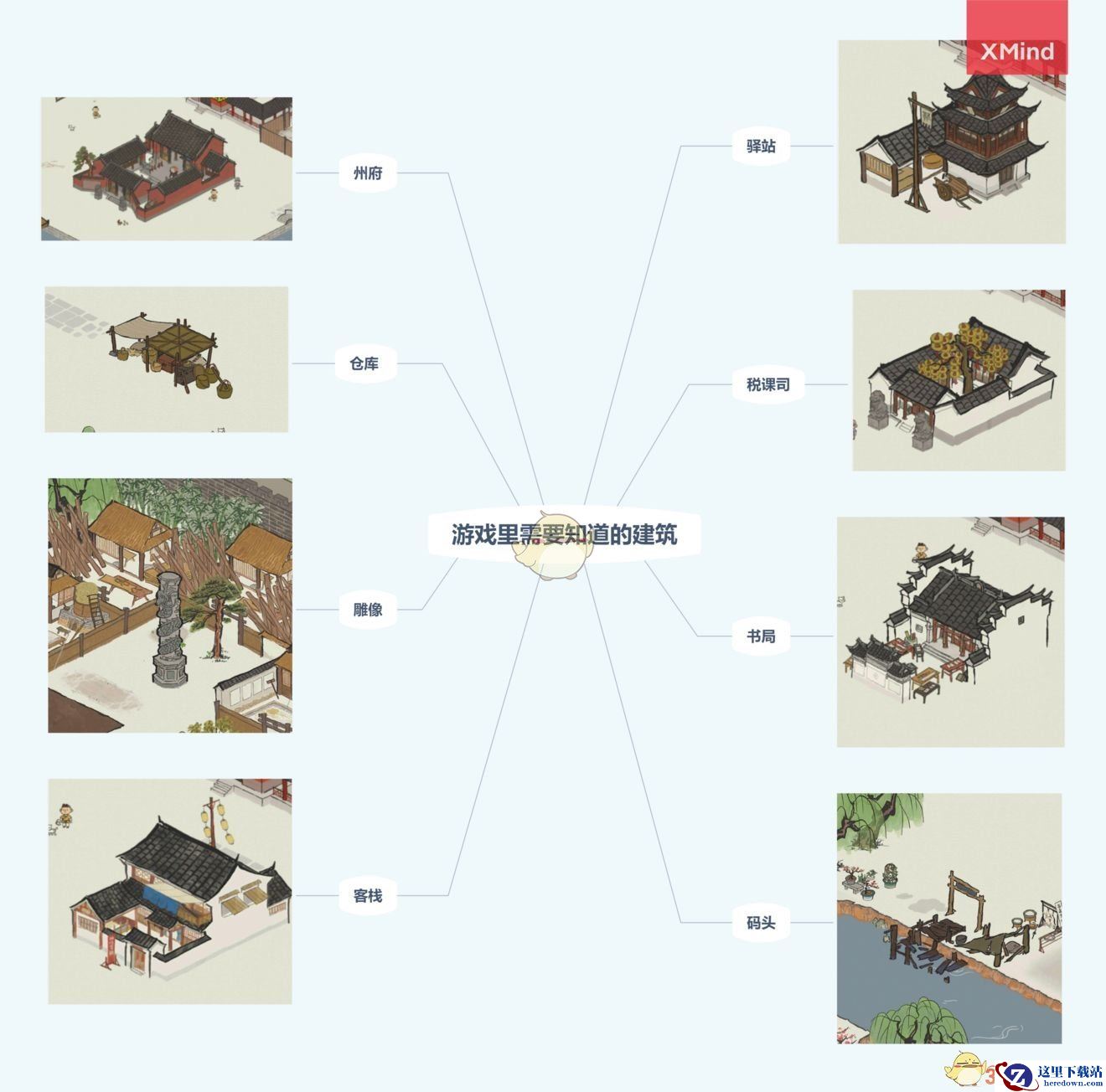 附上一张游戏里需要知道的建筑的图片,有些需要修复以后才能使用。